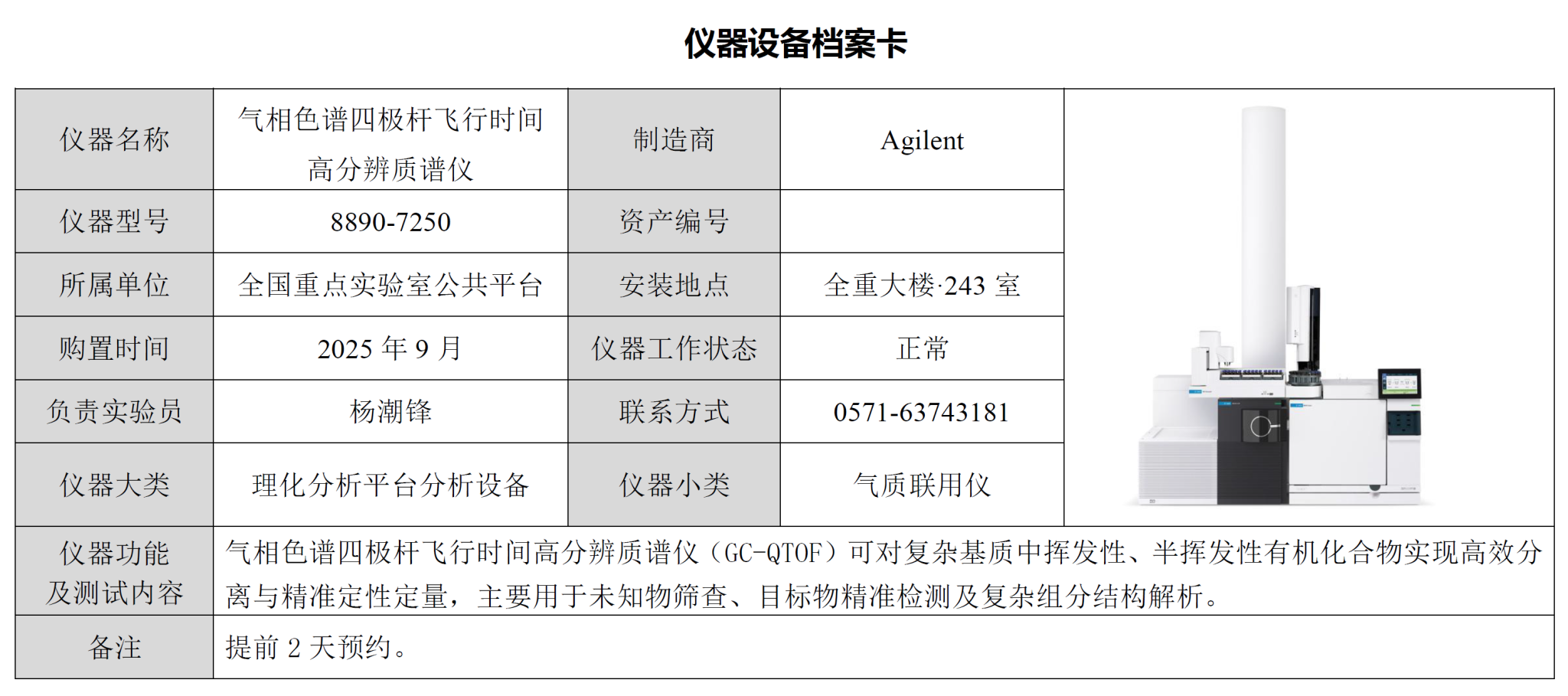 气相色谱四极杆飞行时间高分辨质谱仪(8890-7250)