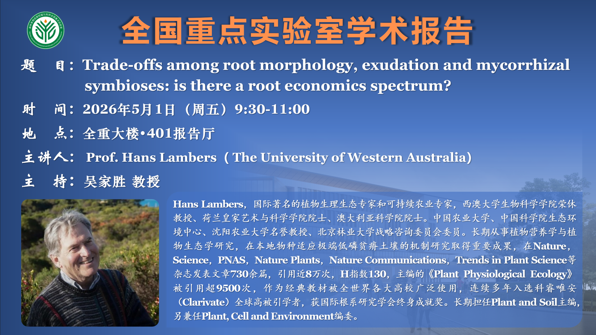 浙江农林大学全国重点实验室 学校地址:浙江省杭州市临安区武肃街666号 邮编:311300 电话:0571-63873592